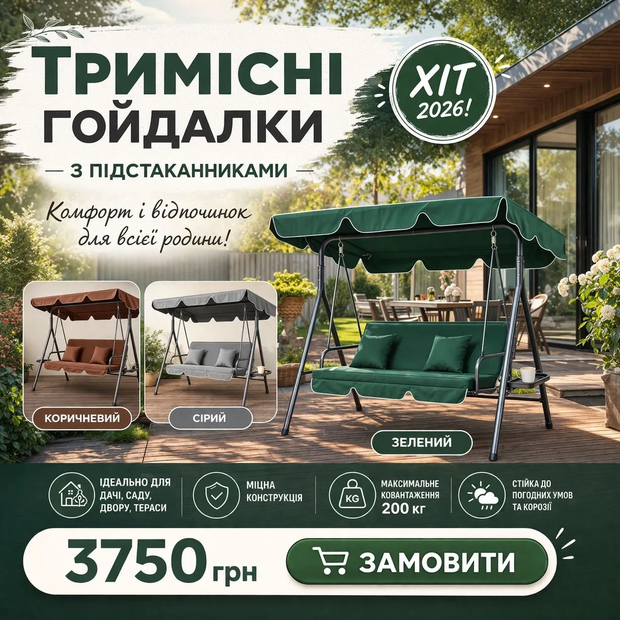 Тримісна, з підстаканниками, зручна та стильна — ідеальна для відпочинку всією сім’єю 🌿