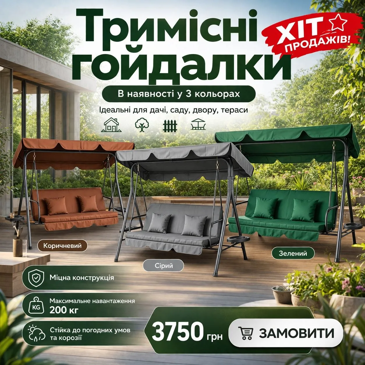 🔥Топова садова гойдалка для вашого двору у сірому кольорі!